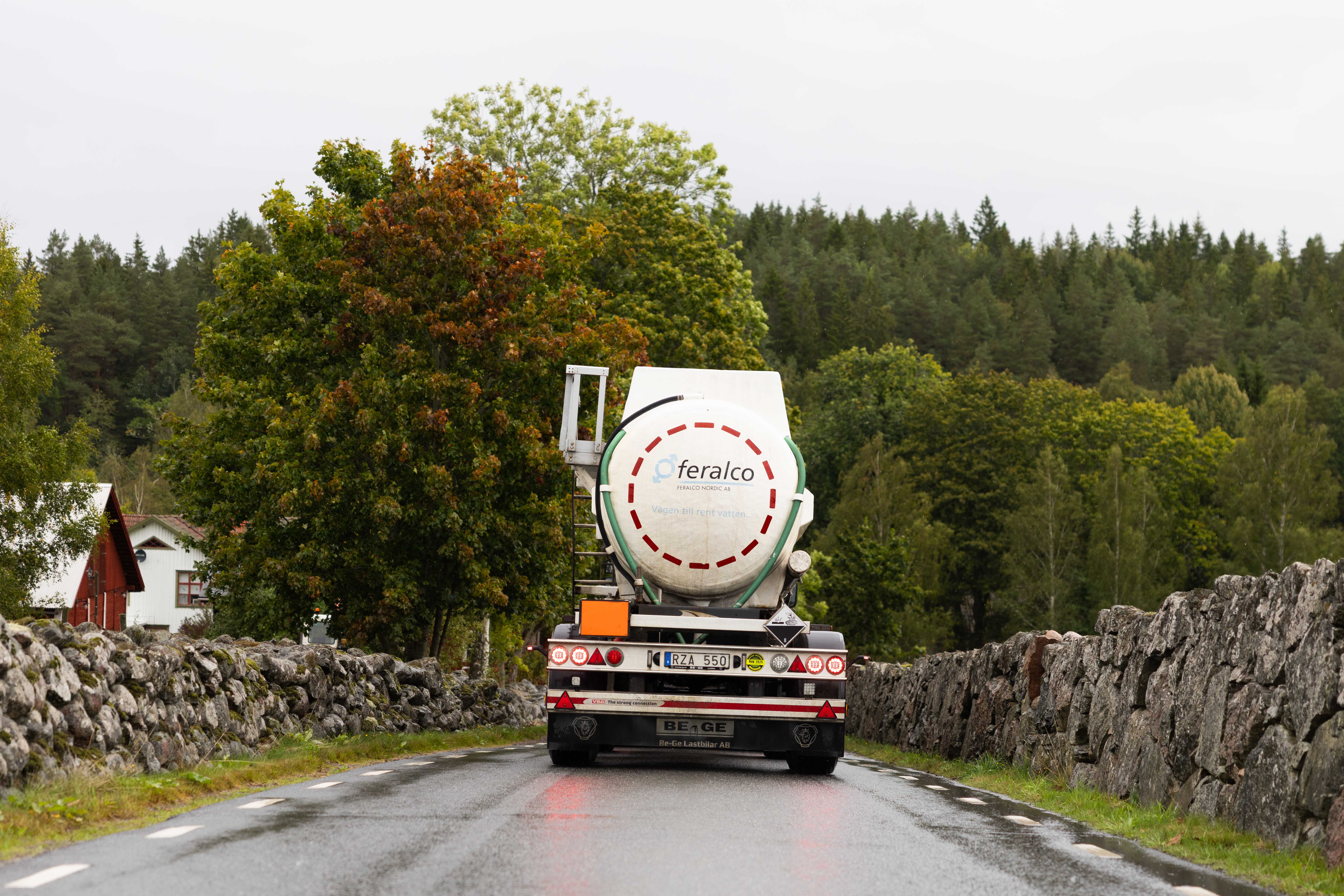 Vi är stolta över att leverera bland annat produkten Ekoflock åt Feralco Nordic AB, som har produktionsanläggningar i Vetlanda och Sölvesborg. Deras produkter är en viktig komponent för vattenrening i kommunala vatten- och reningsverk, men även inom pappersindustrin. Dessa transporter sker inom Sverige.