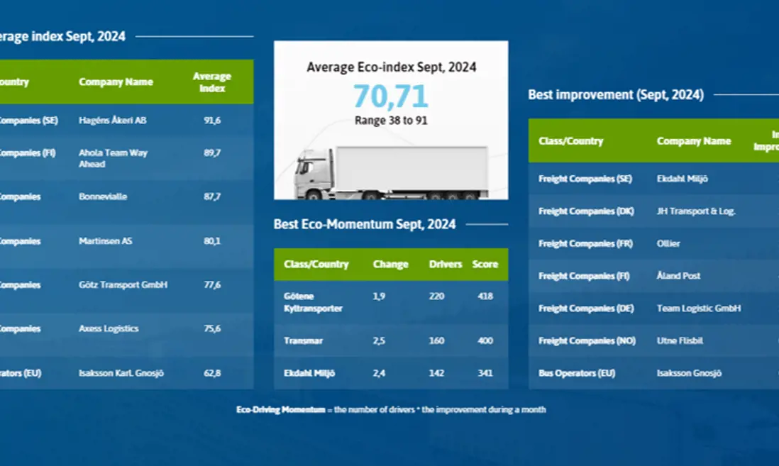 Efter det tredje kvartalet 2024, är Hagéns Åkeri AB fortfarande överst på AddSecures rankning lista. Våra chaufförer har bäst körindex i hela Europa.